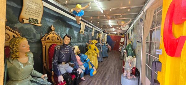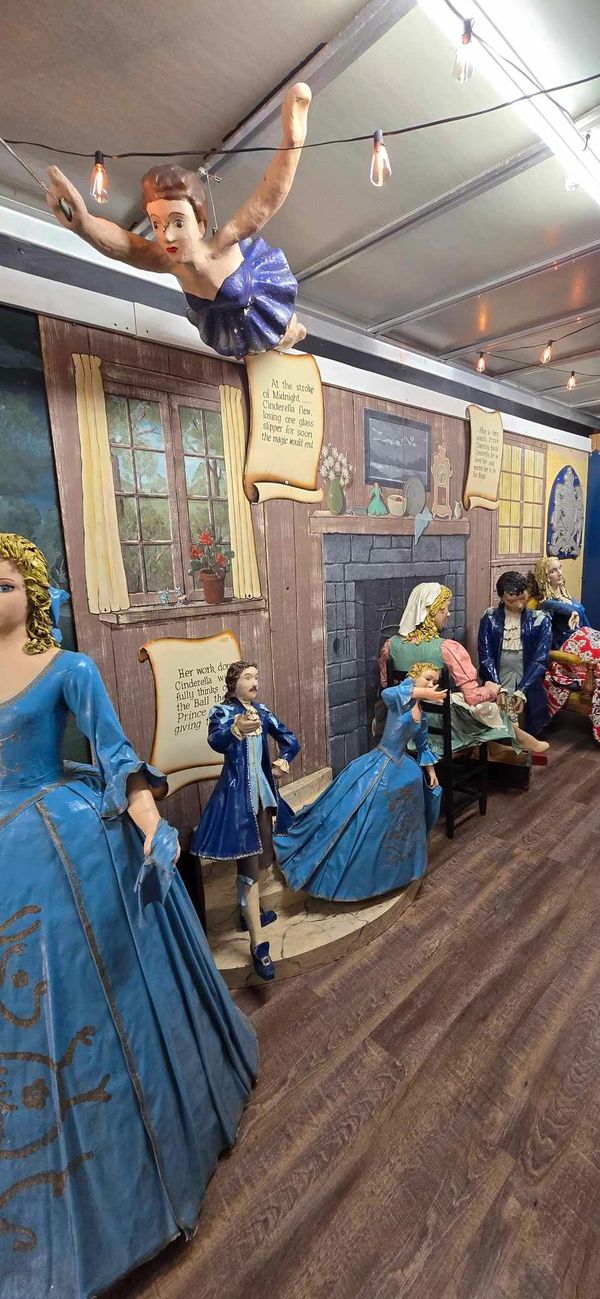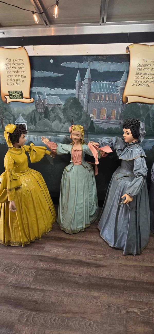 We (Don & Jenn Of Danbury Fair and Raceareana) are honored to announce our new / old exhibit. The display pictured is work in progress and will undergo further restoration. This exhibit is originally from the Great Danbury State Fair located in Danbury Ct. In the early 1960s Cinderellaland was built for the Danbury Fair and was opened up as what would be a fairy tale exhibit bigger than life. The Danbury Fair even had permission from Disney to play Cinderella's sound soundtrack. In 1982, Jack & Arthur Gillette purchased the majority of this display and used it for their children's park at Magic Forest located in Lake George NY. Owner Jack Gillette, would fully retire from the Magic Forest park between 2019 and 2021 as items would be privately sold, auctioned and given away / Stored. This display would end up stored in a storage unit in Danbury CT. Through many seasons in a storage unit that had some unknown faults the items took on damage including mold and animals living in it. The display was put away with the best of intentions but the small flaws had a large impact. In collaboration with the Danbury Museum and Historical Society we would be granted the opportunity to save as much of the exhibit as possible knowing some items would be lost. We are pleased to show you these progress pictures with over 200 hours of time volunteered by 5 people to get the exhibit thus far. We do have several pieces that are just too far gone however we have saved 95% of them! We are very excited to be working with The Danbury Museum and Historical Society as we will be sharing photos and links to much of the mass collection of photos and movies the museum holds.